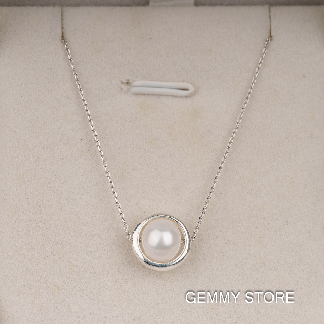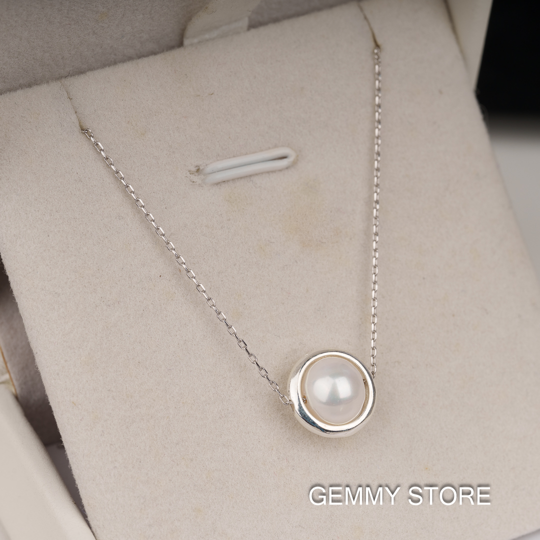 Dây Chuyền Xuyên Ngọc Trai Viền Bạc SP1019