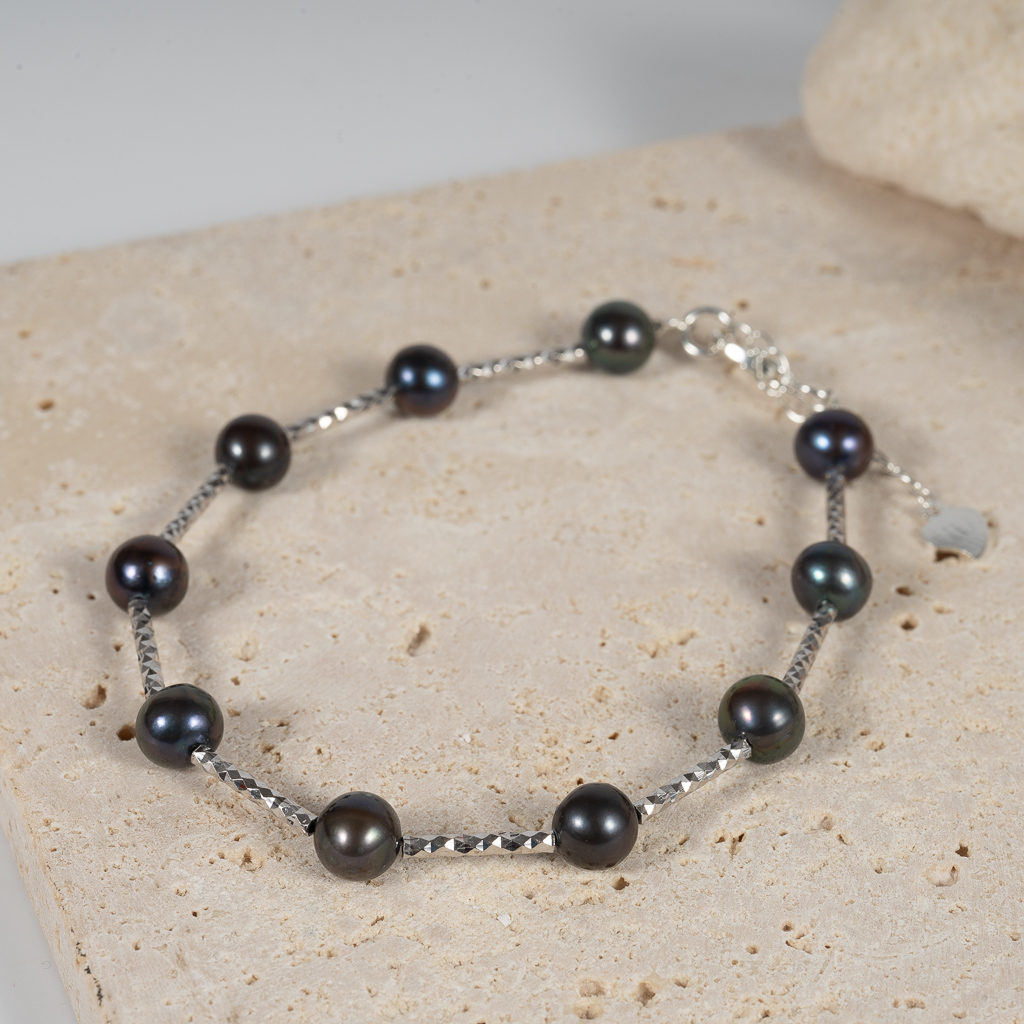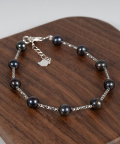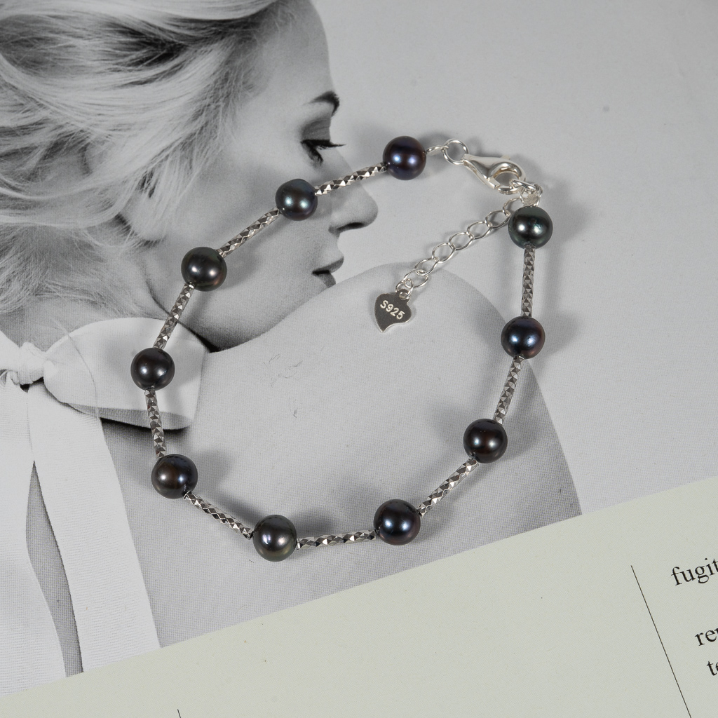 Lắc Tay Bạc Ngọc Trai Đen Cách Hạt BC1049