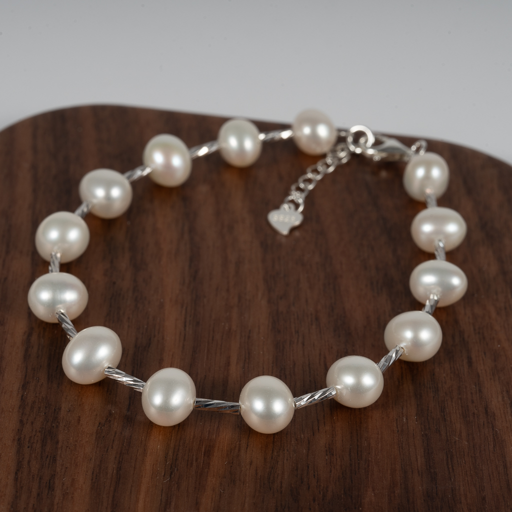 Lắc Tay Bạc Ngọc Trai Size To Cách Hạt BC1047