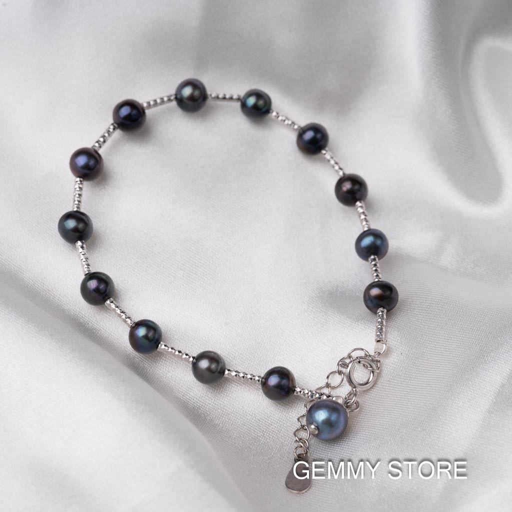 Lắc Tay Ngọc Trai Đen Cách Hạt S925 BC1019