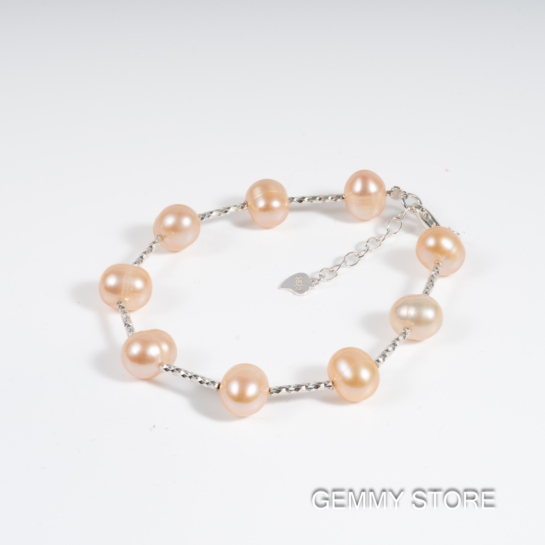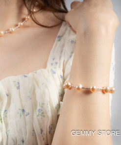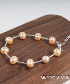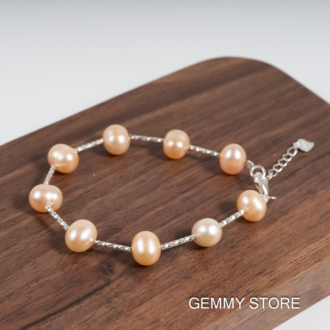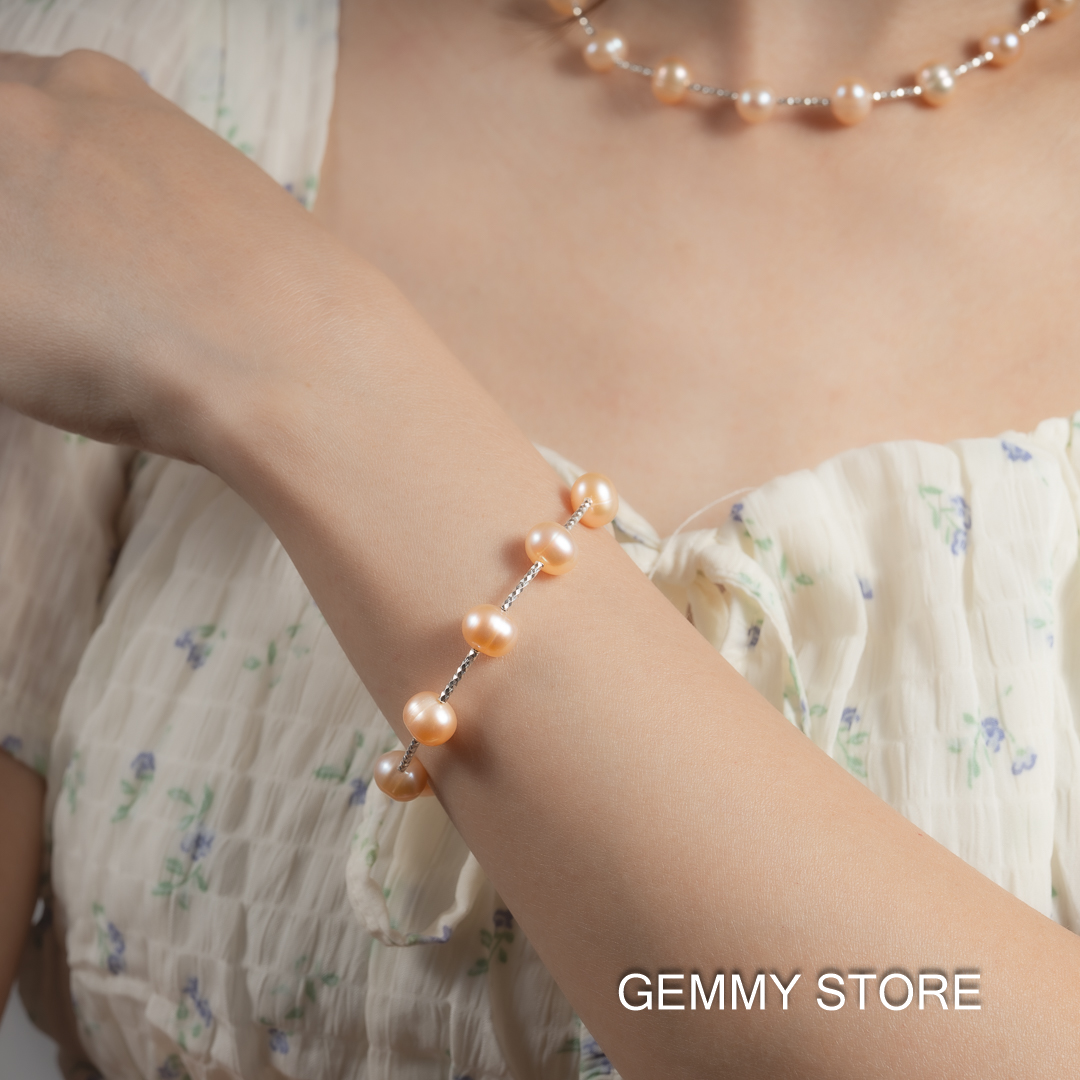 Lắc Tay Ngọc Trai Hồng Cách Hạt Kết Hợp Thanh Bạc BC1023