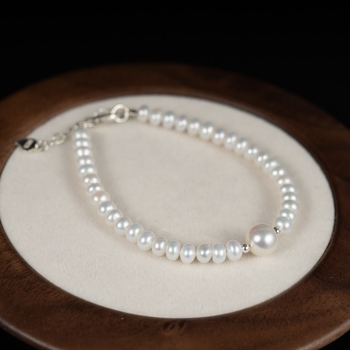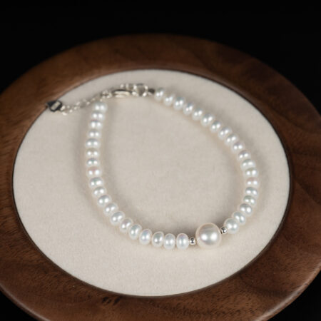 Lắc Tay Ngọc Trai Trắng Kiểu Hạt Đính Giữa BC1033