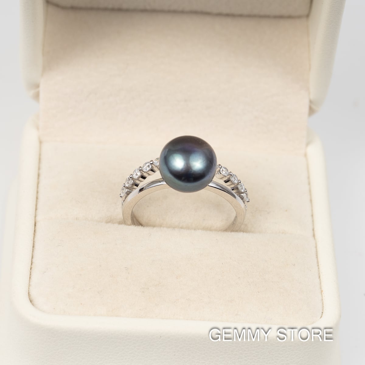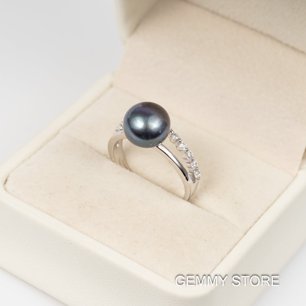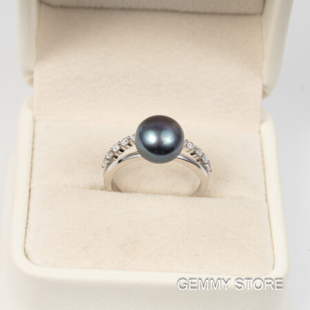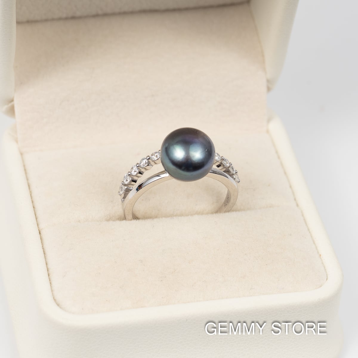 Nhẫn Ngọc Trai Đen Tròn 9.5 ly Kết Hợp Bạc S925 SR1012