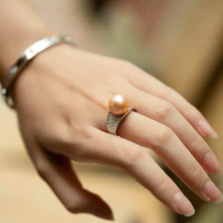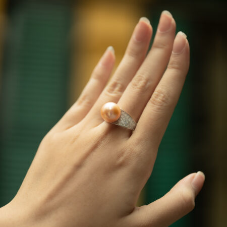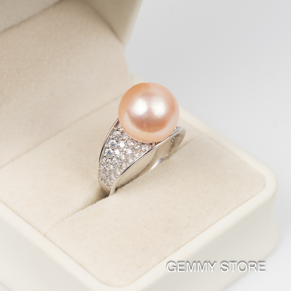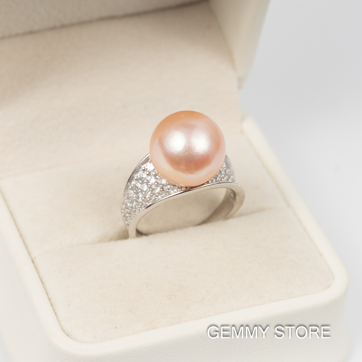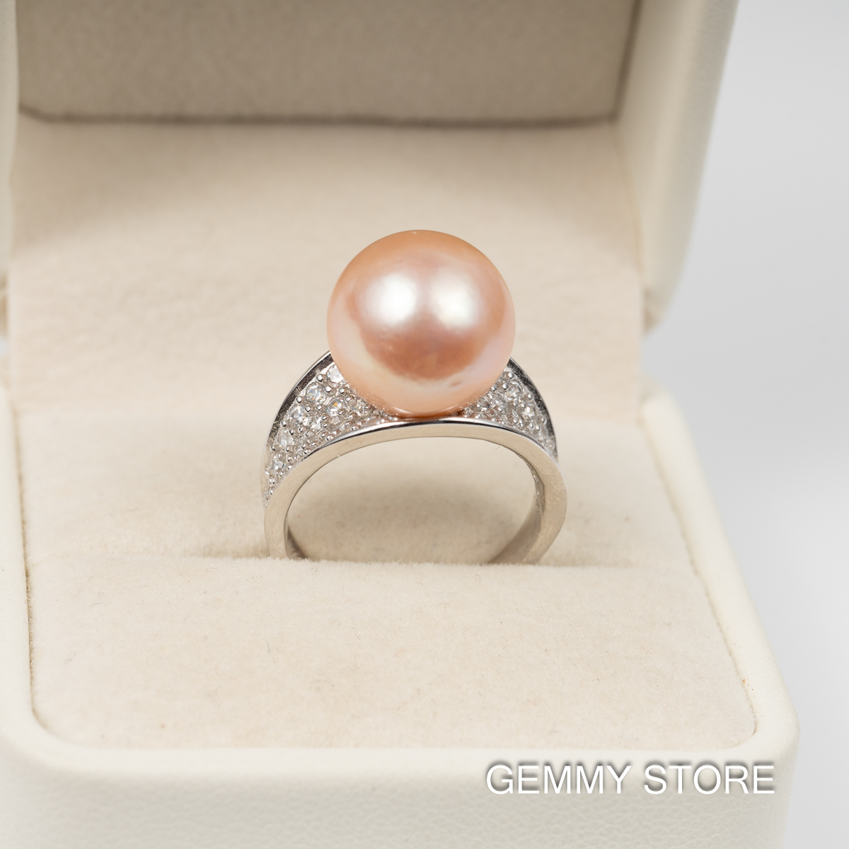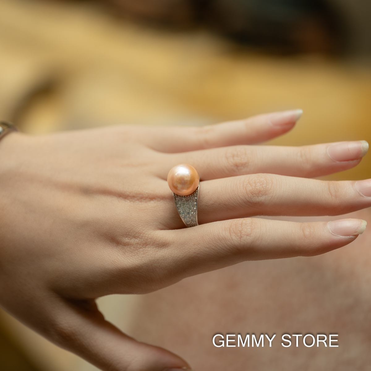 Nhẫn Ngọc Trai Hồng Tròn Đẹp Kết Hợp S925 12.5mm SR1015