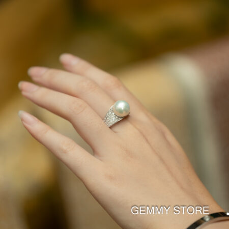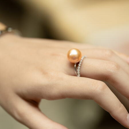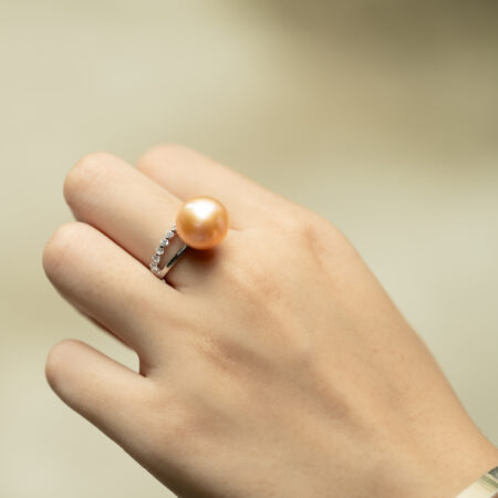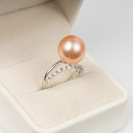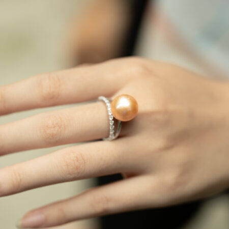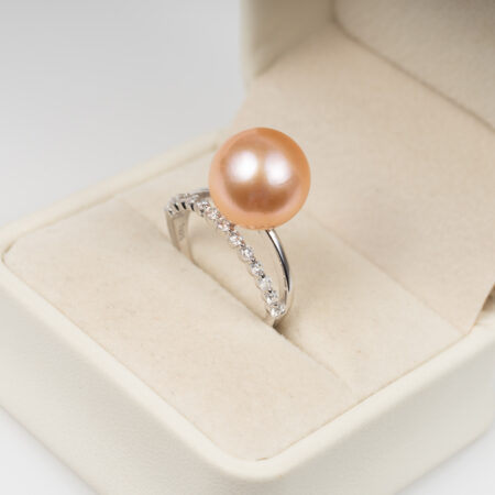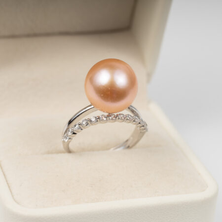 Nhẫn Ngọc Trai Hồng Tròn Đẹp Kết Hợp S925 12.5 ly SR1025