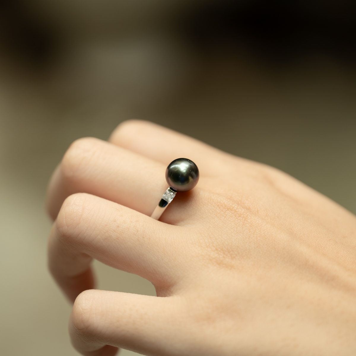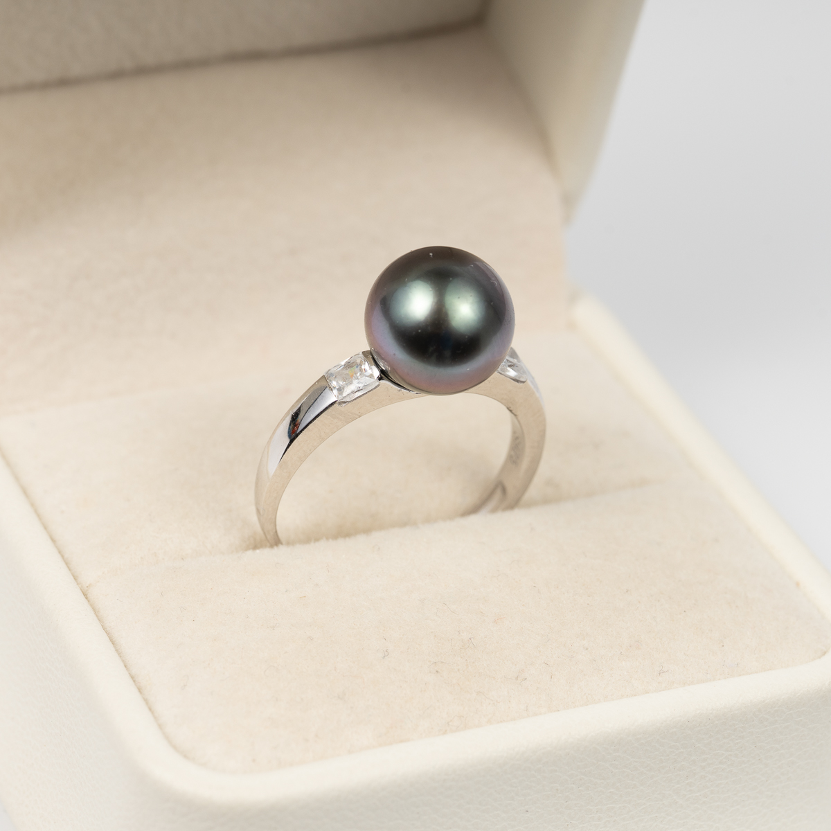 Nhẫn Ngọc Trai Tahiti Đen Tròn S925 10mm SR1022
