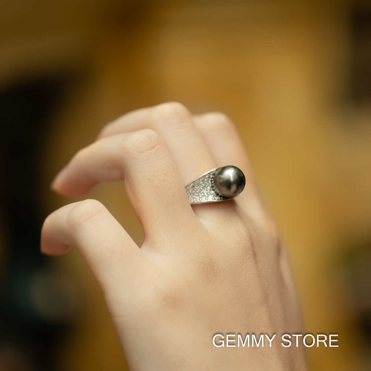 Nhẫn Ngọc Trai Tahiti Đen Tròn S925 10,5 ly SR1017