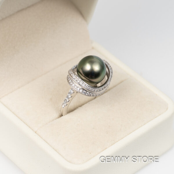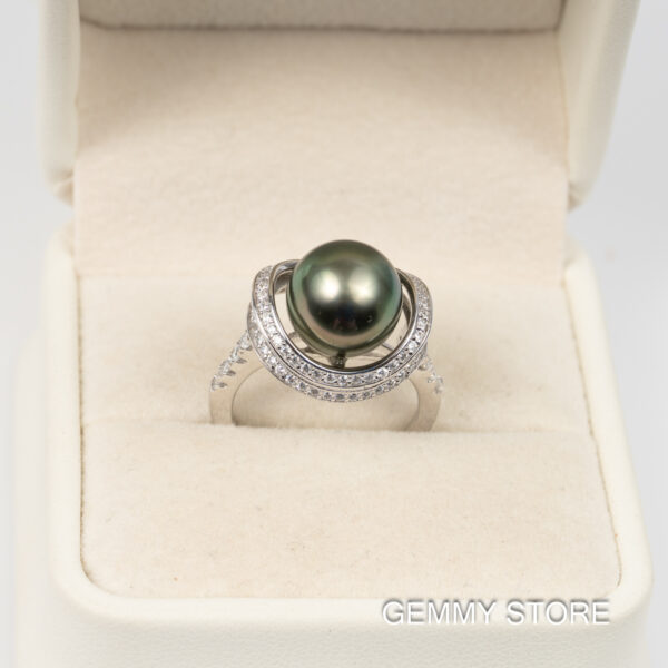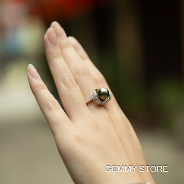 Nhẫn Ngọc Trai Tahiti Đen Tròn S925 12 ly SR1014