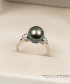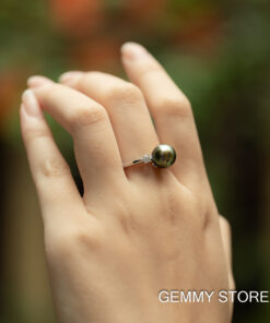 Nhẫn Ngọc Trai Tahiti Đen Tròn S925 9.5mm SR1020