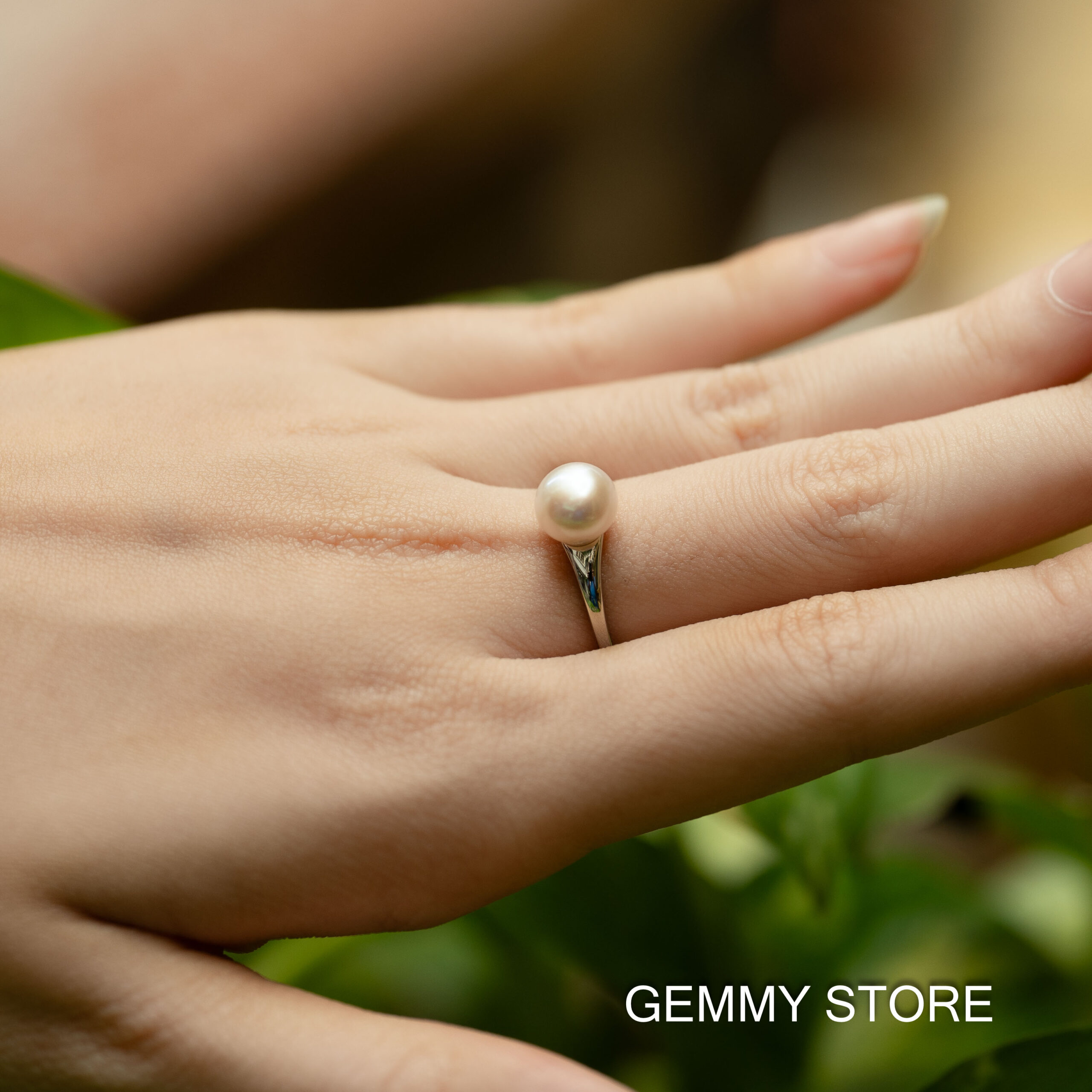 Nhẫn Ngọc Trai Tím Nhạt Bạc S925 8-8.5 ly SR1001