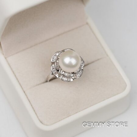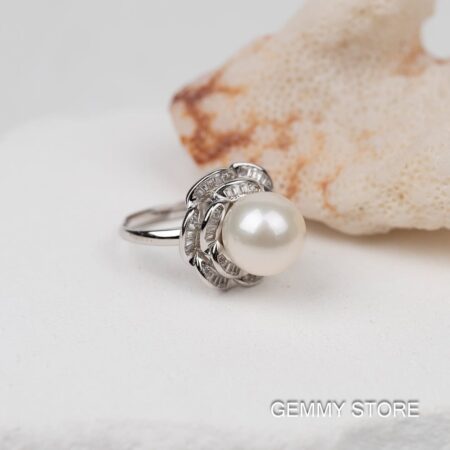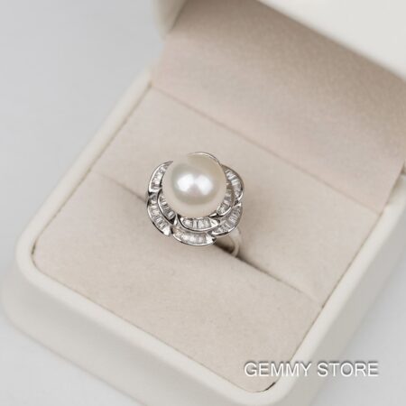 Nhẫn ngọc trai tròn viền cánh hoa hồng lỗng lẫy T24217