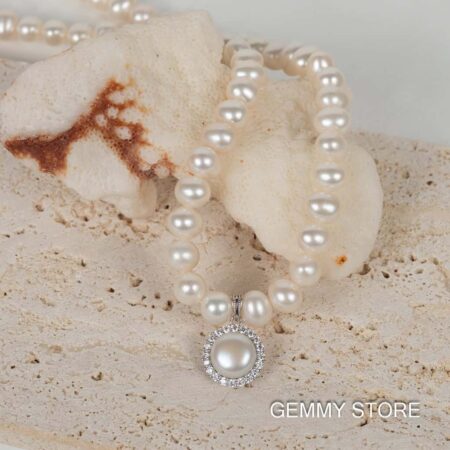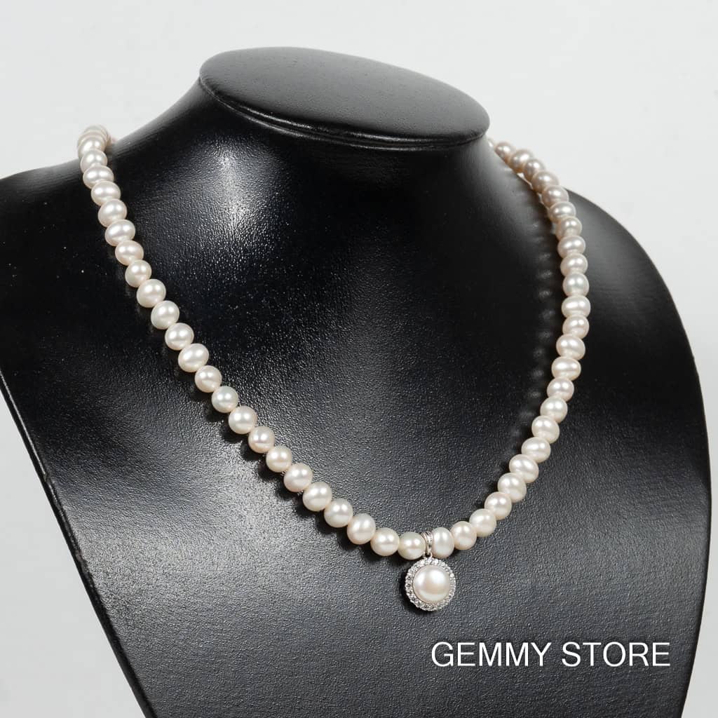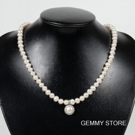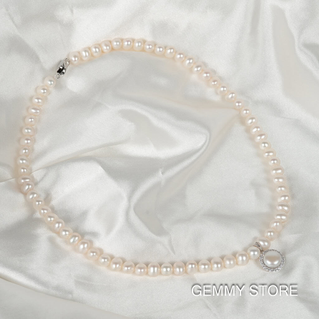 Vòng Cổ Ngọc Trai Hạt Bóng Đẹp Kết Hợp Mặt Bạc Ngọc Trai Np1024