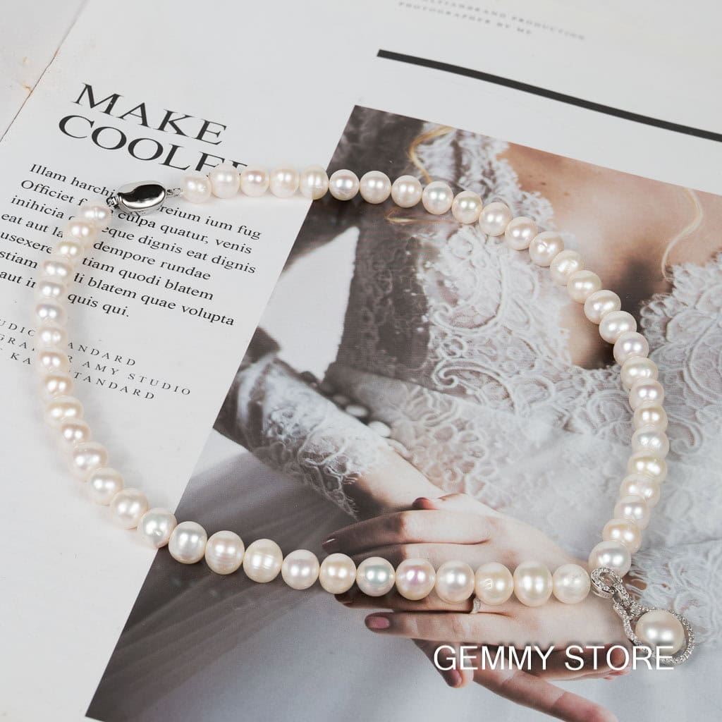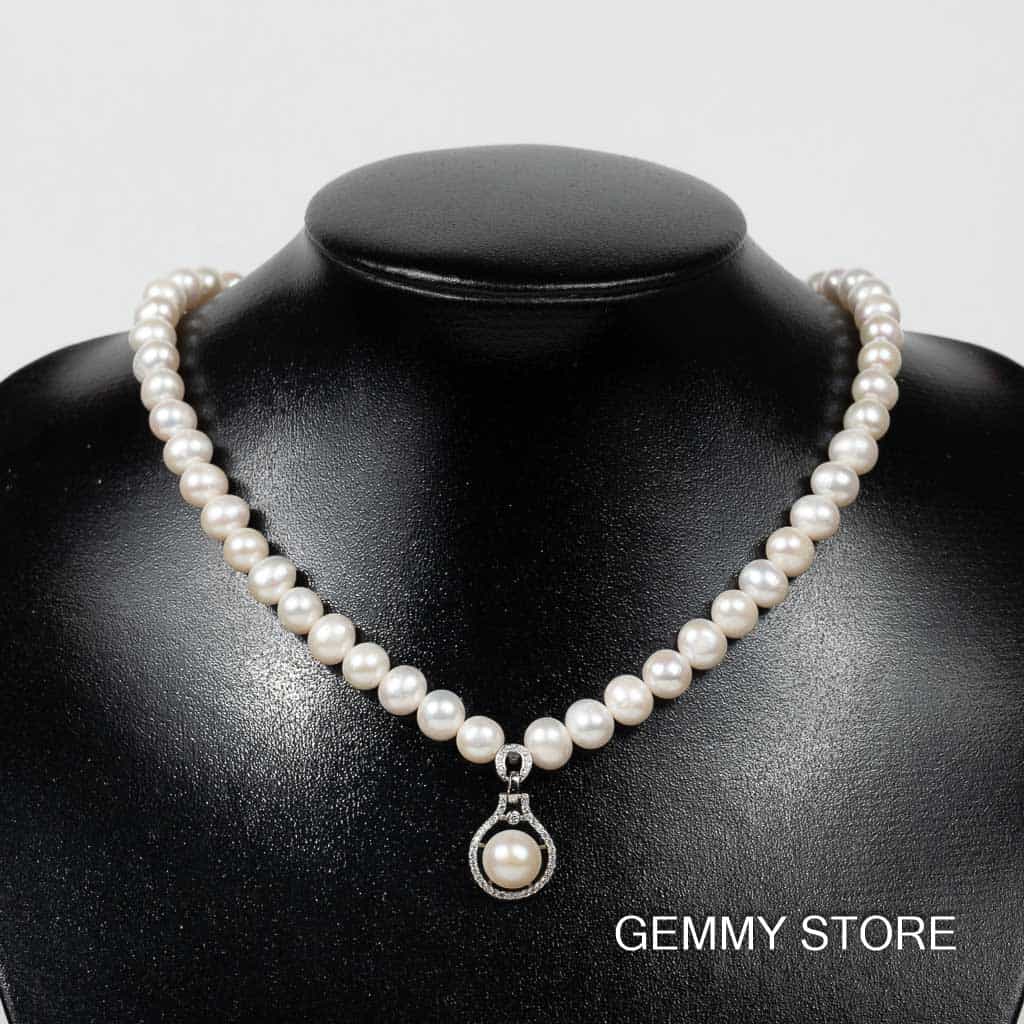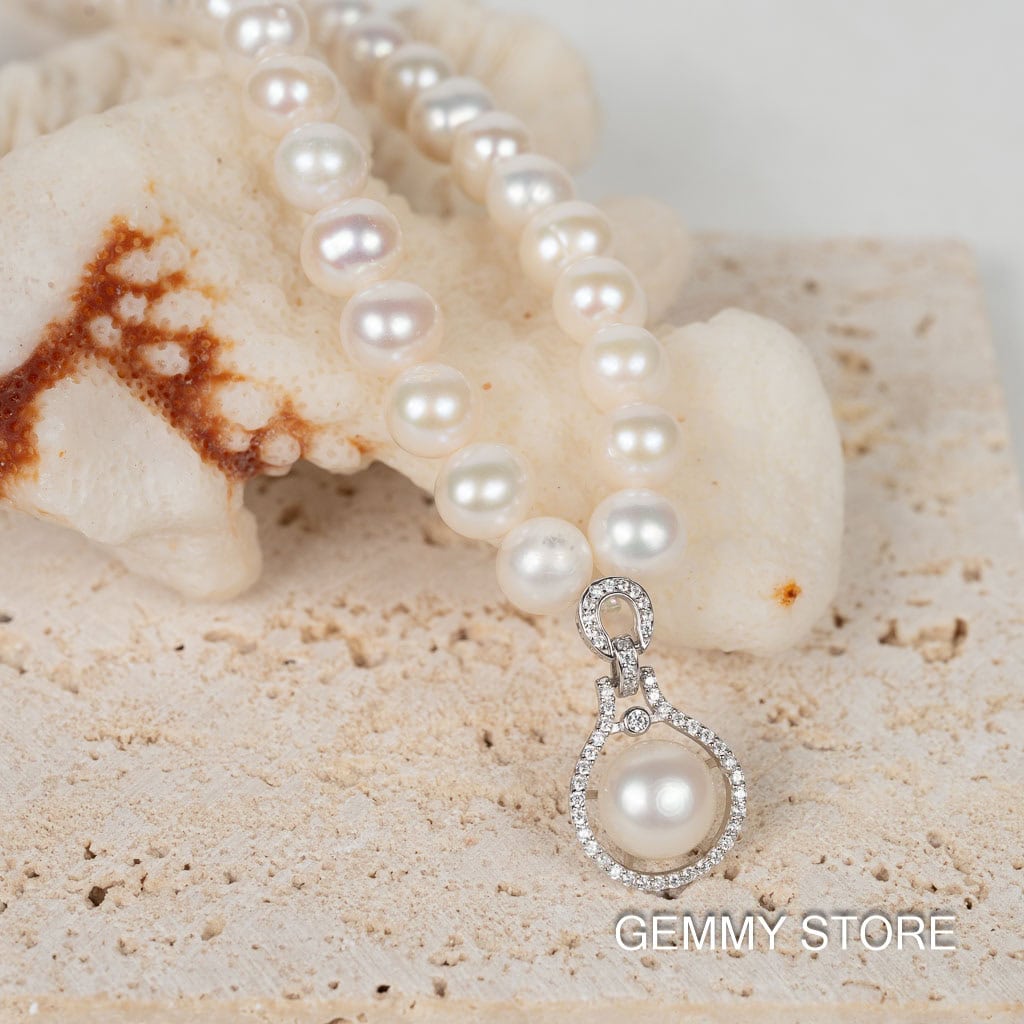 Vòng Cổ Ngọc Trai Kết Hợp Mặt Dây Bạc Viền Đá Np1012