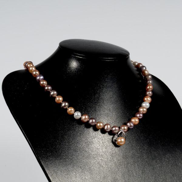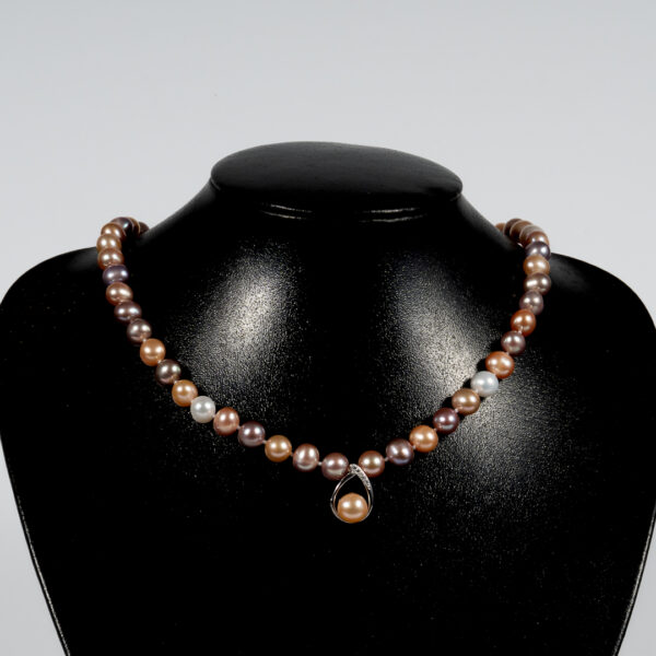 Loại ngọc: ngọc trai nuôi nước ngọt Màu sắc: Pha mầu Hình dạng: cầu/hạt ; cúc/mặt dây Kích thước: 8-9mm Độ dài: 45cm Mặt bạc S925