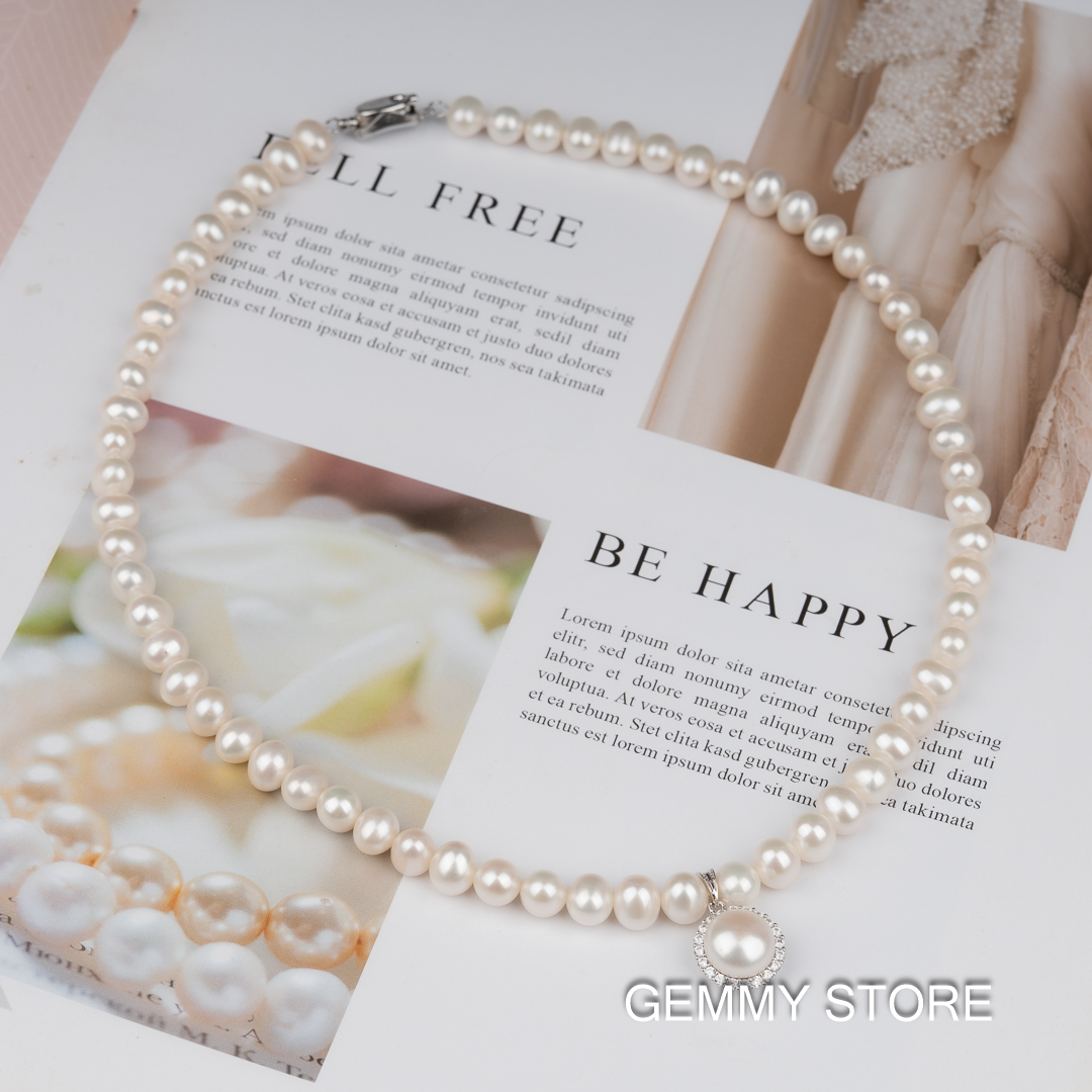 Vòng Cổ Ngọc Trai Trắng Hạt Đẹp Có Mặt NP1044