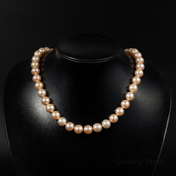 Loại ngọc: ngọc trai nuôi nước ngọt Màu sắc: Hồng Cam Hình dạng: Cầu Kích thước: 9.5-11mm/ hạt Độ dài: 44cm Khóa Bạc S925