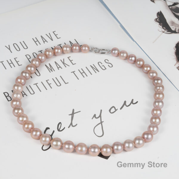 Loại ngọc: ngọc trai nuôi nước ngọt Màu sắc: Tím Hình dạng: Cầu Kích thước: 9.5-11mm/ hạt Độ dài: 44cm Khóa Bạc S925