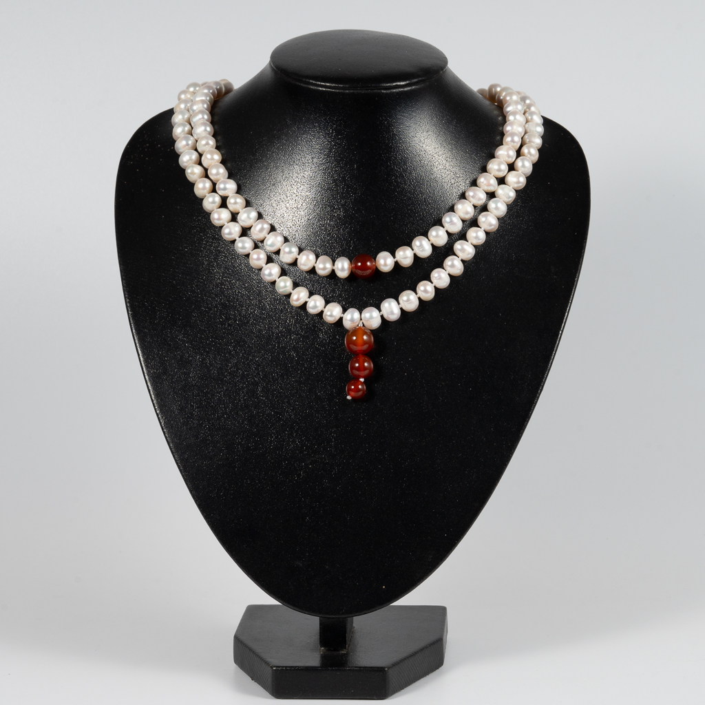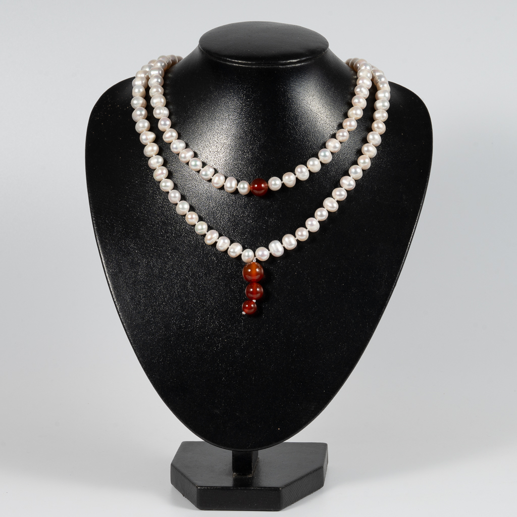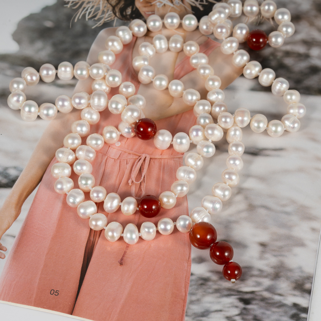 Vòng Ngọc Trai Dài 108 Hạt Kết Hợp Đá Mã Não Đỏ NP1074
