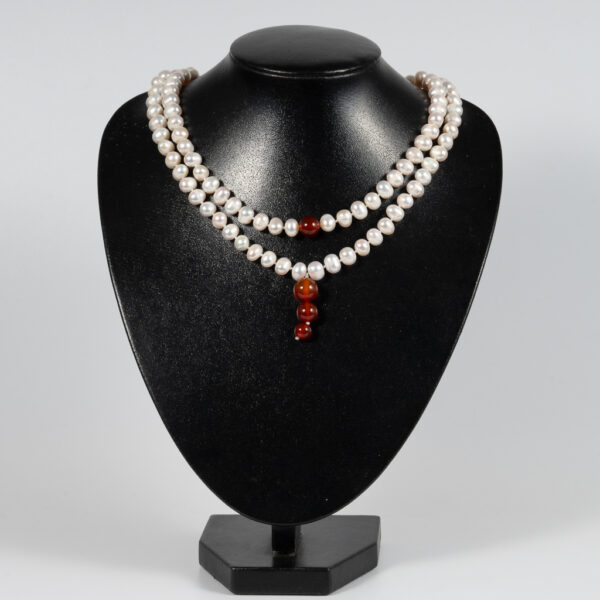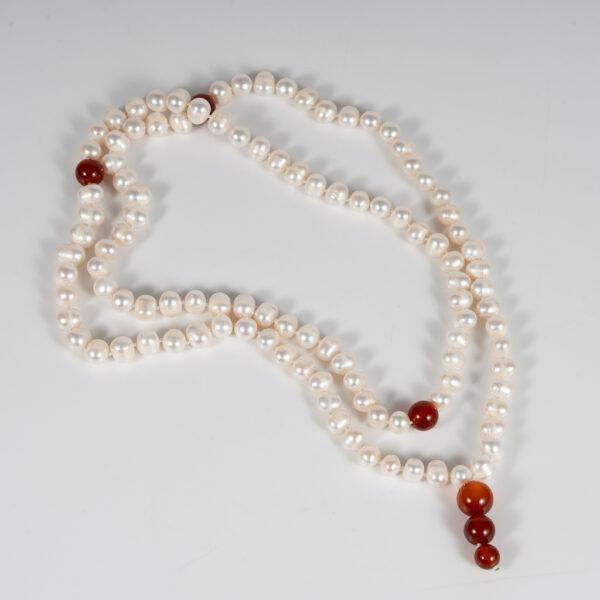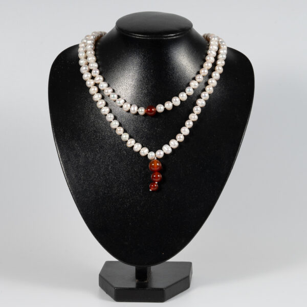 Vòng Ngọc Trai Dài 108 Hạt Kết Hợp Đá Mã Não Đỏ NP1074