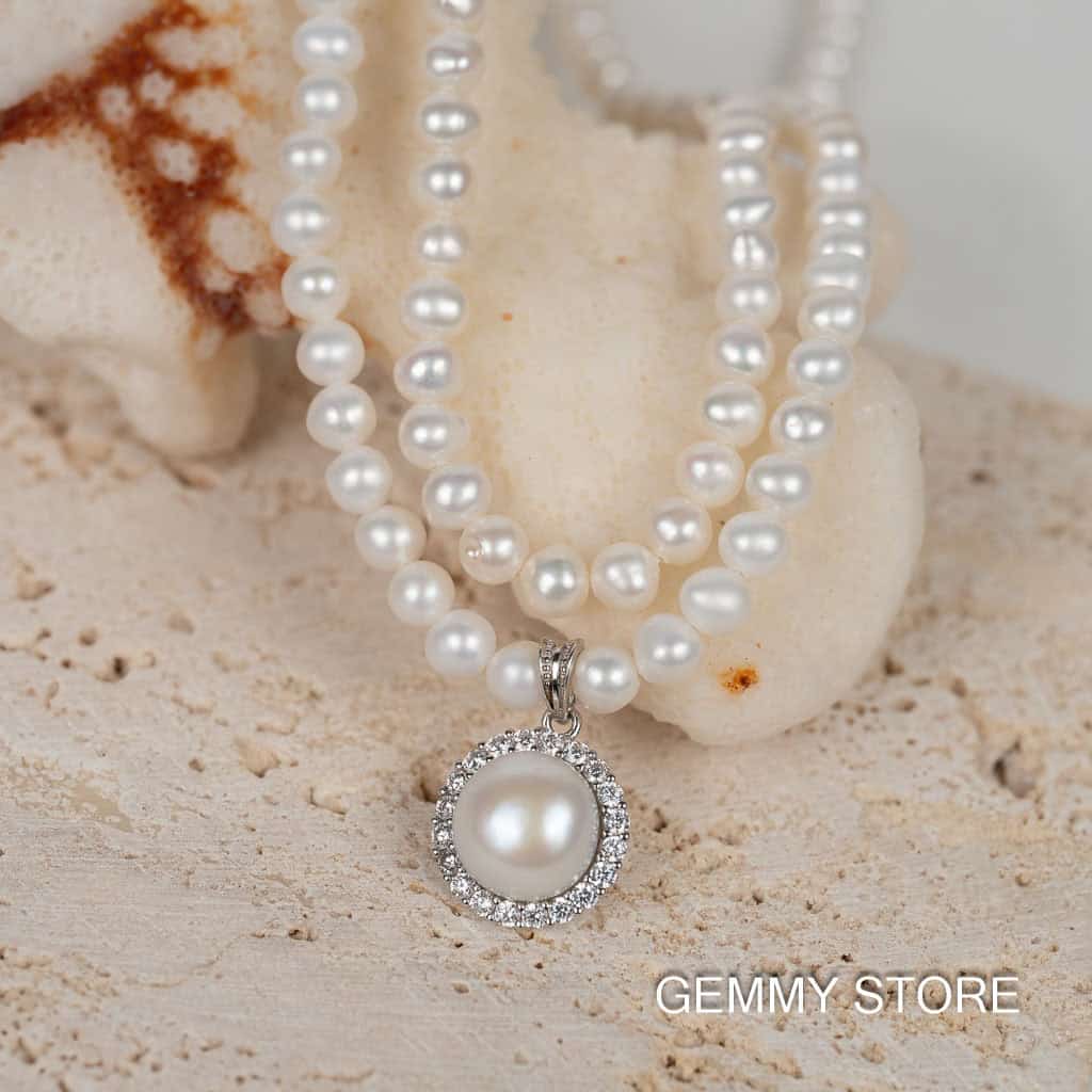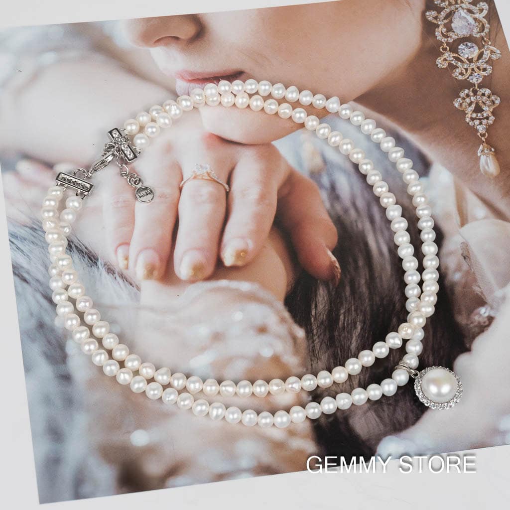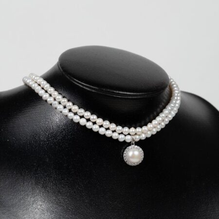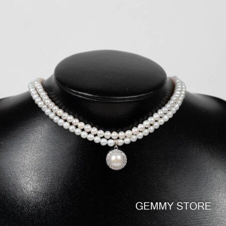 Vòng Ngọc Trai Hai Tầng Hạt Nhỏ Tạo Kiểu Choker Kết Hợp Mặt Dây Np1021