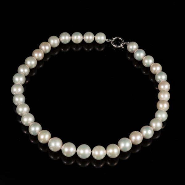 Loại ngọc: ngọc trai nuôi nước ngọt Màu sắc: Trắng Hình dạng: Cầu Kích thước: 12-13mm/ hạt Độ dài: 45cm Bạc S925