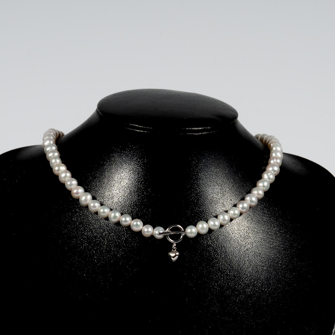 Loại ngọc: ngọc trai nuôi nước ngọt Màu sắc: Trắng Hình dạng: Cầu Kích thước: 7-7.5mm/ hạt Độ dài: 41cm Khóa Bạc s925