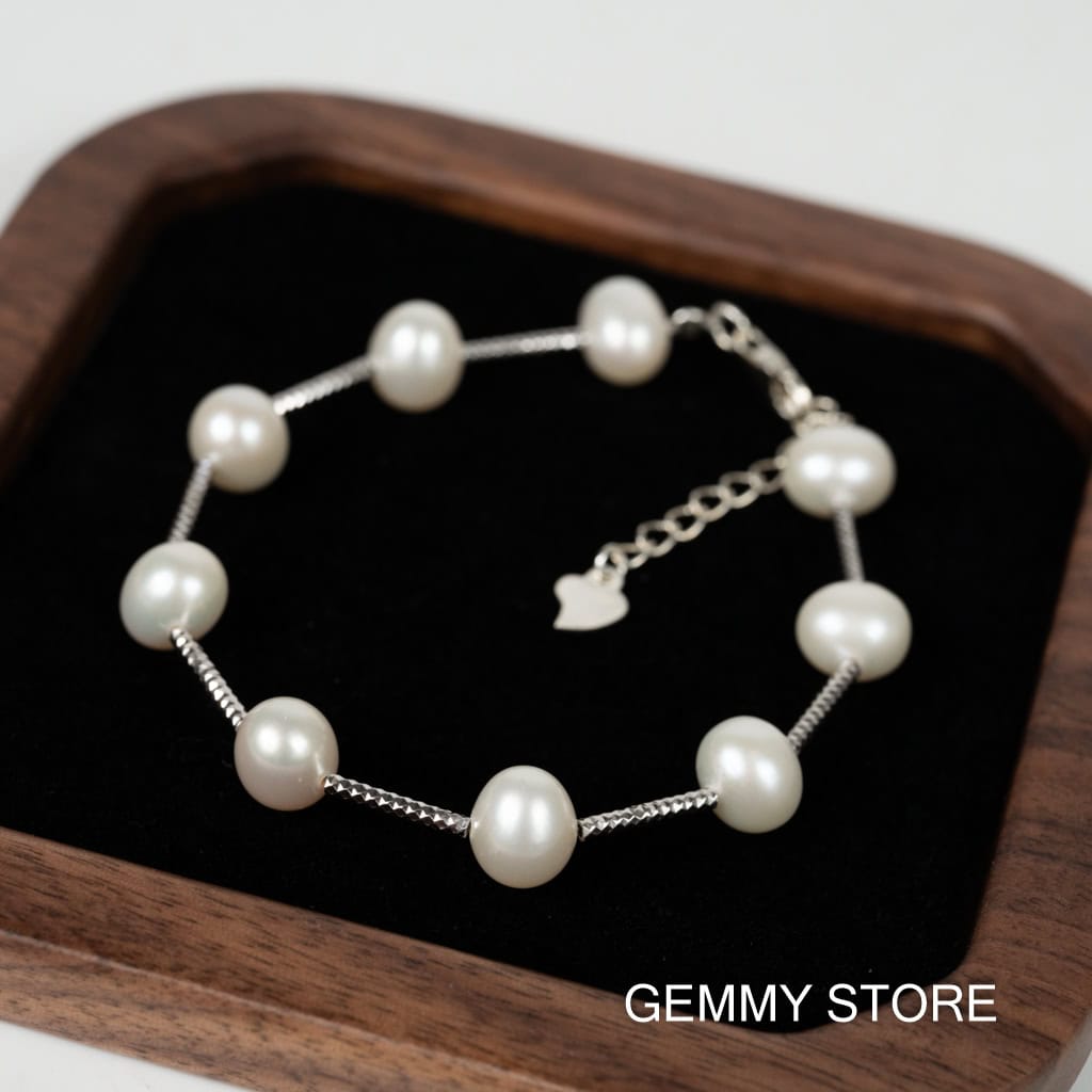 Vòng Tay Ngọc Trai Cách Hạt Kết Hợp Bạc S925 BC1018