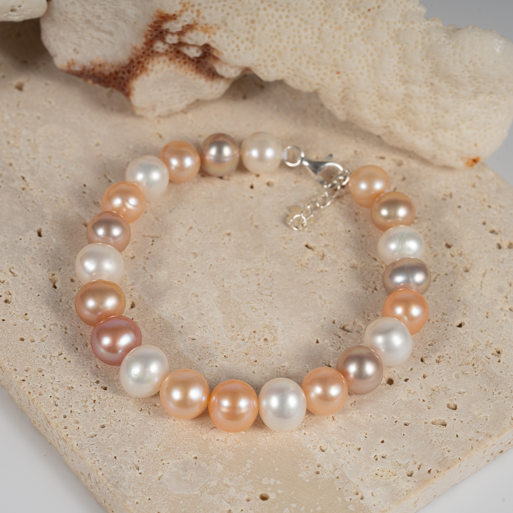 Loại ngọc: ngọc trai nuôi nước ngọt Màu sắc: Pha mầu Hình dạng: Cầu Kích thước: 7.5-8.5mm/ hạt Độ dài: 17+3cm Chất liệu : Khóa Bạc s925