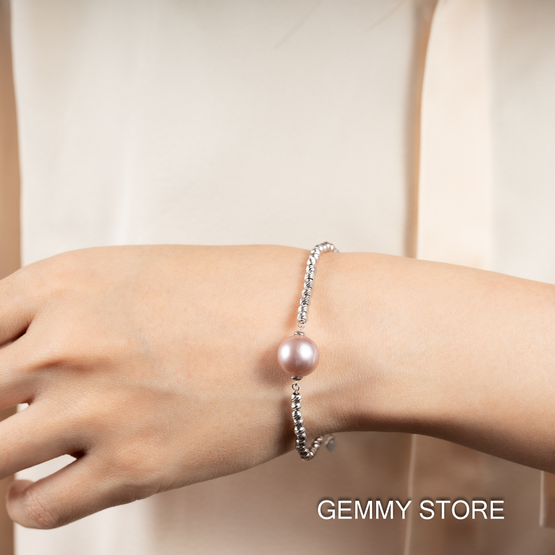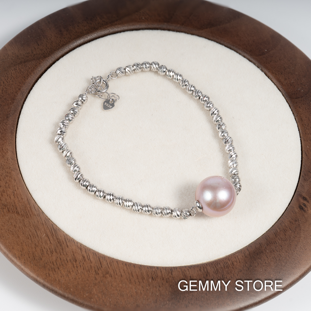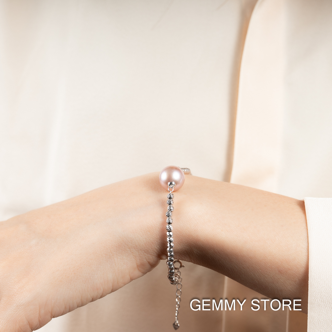 Vòng Tay Ngọc Trai Tím Kết Hợp Bi Bạc BC1025